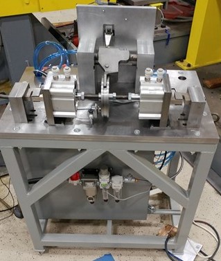 Transmission shift actuator testing machine which utilizes pneumatic cylinders to simulate push in and pull out forces on the actuator and shift fork due to the gear dogs in a transmission.